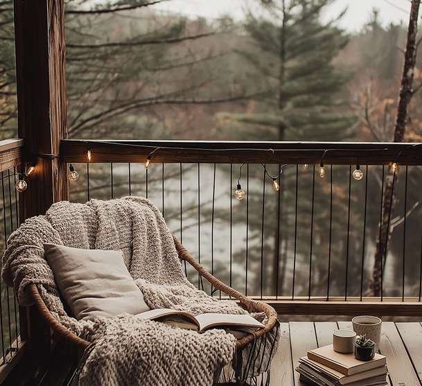 Step inside and you’ll be welcomed by warm wooden interiors, sloped ceilings, and large glass windows that flood the space with natural light. The clever, space-saving layout includes a snug sleeping loft, a compact living area, and an open kitchenette, creating a homey yet stylish atmosphere. The interiors balance earthy tones with cozy textiles, making every corner inviting.