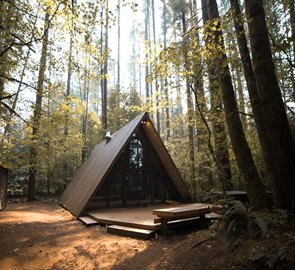 Surrounded by tall pines, it’s a nature-lover’s dream with minimalist interiors and eco-friendly materials.